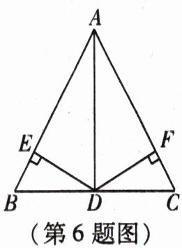 6. 如图,在 $\triangle ABC$ 中,$AB = AC$,点 $D$ 在 $BC$ 上,$DE\perp AB$,$DF\perp AC$,垂足分别为 $E$,$F$,且 $DE = DF$. 求证:$D$ 是 $BC$ 的中点.