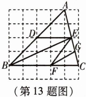13. 如图,△ABC 是边长为 1 个单位长度的正方形网格中的格点三角形,则其重心在(