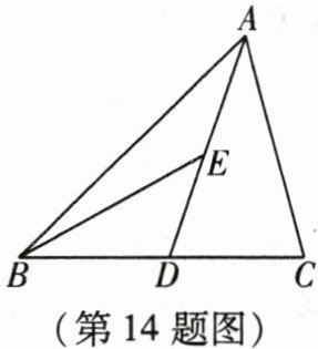 14. 如图,在△ABC 中,AD 是 BC 边上的中线,BE 是△ABD 中 AD 边上的中线,若△ABC 的面积是 24,则△ABE 的面积是