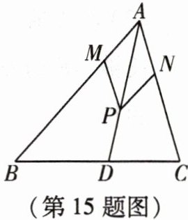 15. 如图,AD 是△ABC 的角平分线,P 为 AD 上一点,PM//AC 交 AB 于点 M,PN//AB 交 AC 于点 N. 求证:PA 平分∠MPN.