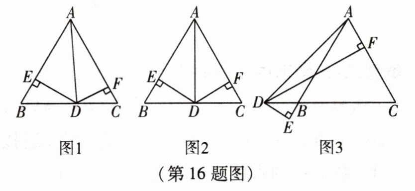 如图,在△ABC 中,AB = AC,D 为 BC 边所在直线上任意一点,连接 AD. 已知 DE,DF 分别是△ABD,△ACD 的高.