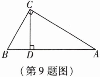 9. 如图,在△ABC中,∠ACB= 90°,CD是高,∠A= 30°,BD= 2,则AB的长为(