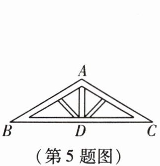 5. 如图,屋顶钢架外框是等腰三角形,其中AB= AC,工人师傅在焊接立柱时,只用找到BC的中点D,这就可以说明竖梁AD垂直于横梁BC了,工人师傅这种操作方法的依据是(