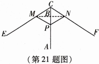 21. (10分)如图是遮阳伞的示意图,伞柄垂直于地面. 当伞收紧时,点P与点A重合;当伞慢慢撑开时,动点P由A向B移动;当点P到达点B时,伞张得最开. 已知伞在撑开的过程中,总有PM= PN,CM= CN.