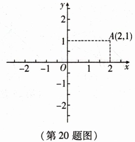 20. (10分)(新考法·新定义阅读)点P(a,b)是平面直角坐标系xOy内一点,点P的轴变换定义为:当|a|>|b|时,作点P关于x轴对称;当|a|≤|b|时,作点P关于y轴对称. 根据定义,解决问题:如图,平面直角坐标系中,点A的坐标为(2,1),点B的坐标为(-1,m),其中m<-1,点A,B轴变换后的对应点分别是点A',B'.