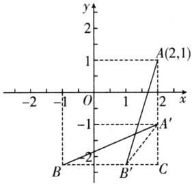 ∴点A(2,1)关于x轴对称的点为A'(2,−1).