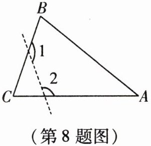 8. 如图,在$\triangle ABC$中,$\angle C = 70^{\circ}$,沿图中虚线截去$\angle C$,则$\angle 1 + \angle 2$等于(