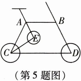 5.(新考法·创设真实情境)近年来,我国一直提倡“绿色环保、低碳生活”,健康骑行越来越受到人们的喜欢。自行车的示意图如图,其中$AB // CD$。若$\angle EAB = 60^{\circ}$,$\angle ECD = 40^{\circ}$,求$\angle AEC$的度数。