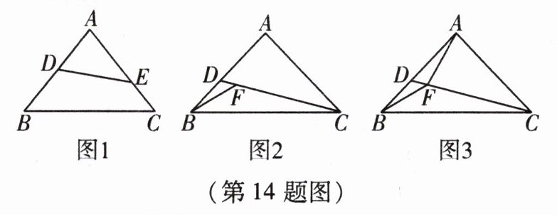 (2)如图2,在$\triangle ABC$中,$\angle ABC = \angle ACB$,点$D在边AB$上,连接$CD$,点$F在CD$上,$\angle ADC = 2\angle FBC$,判断$\angle DBF与\angle ACD$的数量关系,并说明理由;