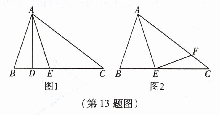 13. 在$\triangle ABC$中,$\angle B = 2\angle C$,$AE平分\angle BAC交BC于点E$。