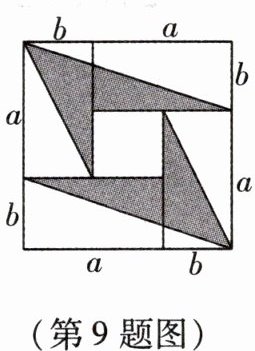 9. 如图,将 4 张长为 $a$、宽为 $b(a > b)$ 的长方形纸片,按如图的方式拼成一个边长为 $(a + b)$ 的正方形,图中空白部分的面积为 $S_{1}$,阴影部分的面积为 $S_{2}$。若 $S_{1}= 2S_{2}$,则 $a$,$b$ 满足(