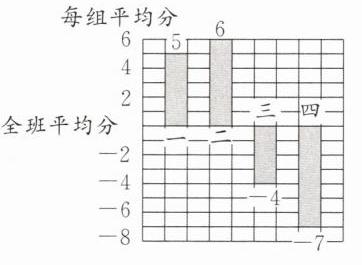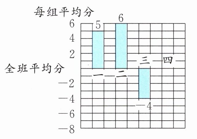 1. 五(4)班学生平均分为四个组参加了体育达标测试。右面是丁宇凡以全班平均分为标准制作的统计图。超过全班平均分的记作正,低于全班平均分的记作负。