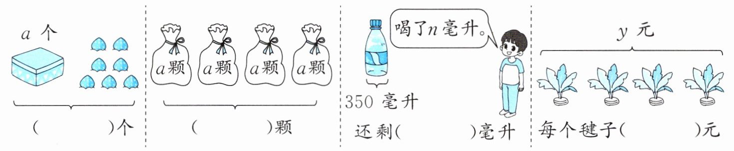 (4)小丽和小芳在跳绳,小丽每分钟跳a下,跳了5分钟。小芳每分钟比小丽多跳7下,比小丽多跳了2分钟。小芳比小丽多跳了(