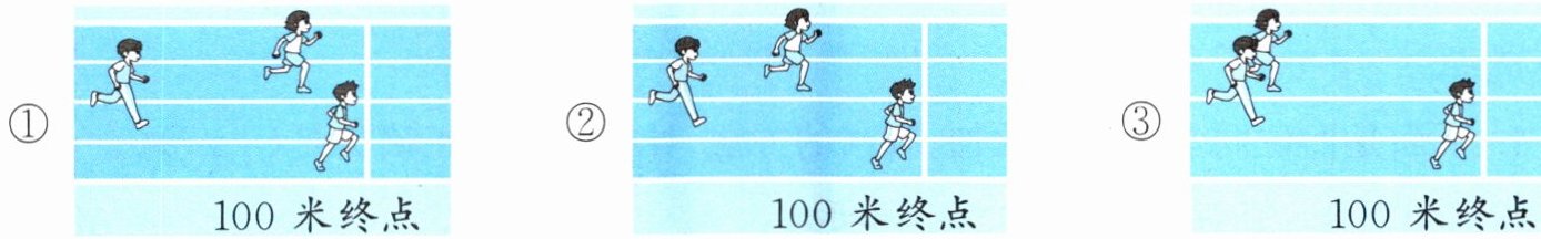 5. 学校男子 100 米跑步比赛中,前三名选手的成绩分别是石磊 16.21 秒、刘浩 17.38 秒、张思 17.50 秒。下面图(