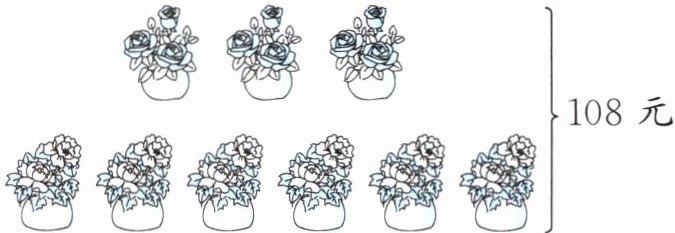 6..妈妈买来6盆牡丹和3盆玫瑰,一共用去108元.每盆牡丹比每盆玫瑰便宜9元,每盆牡丹多少元?每盆玫瑰多少元?