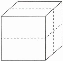 3. 如右图,将一个正方体沿虚线切两刀后,表面积增加64平方厘米,这个正方体的体积是(