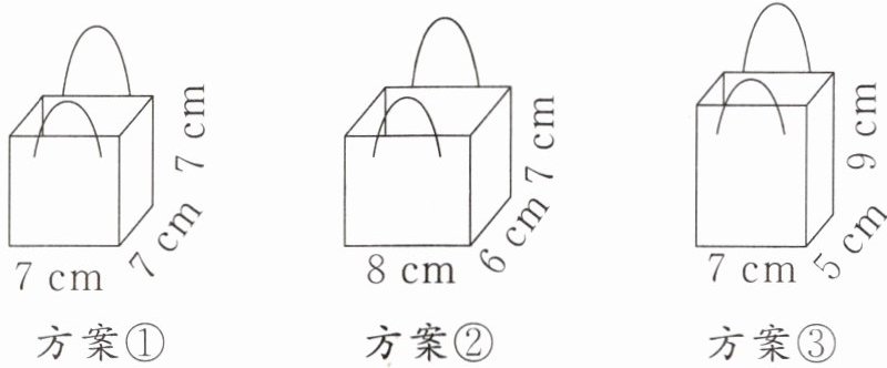 7. 设计公司需要设计一款纸质礼品袋,不计损耗,下面三种设计方案中方案(
