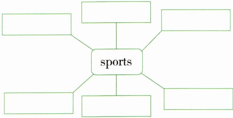 二、原创题 思维品质 根据所给话题,写一写关联词汇(名词或动词),补全思维导图。