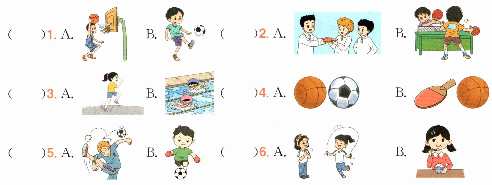 ping-pong,football,basketball,swim,skate,jump(答案不唯一)