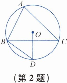 2. 如图,$\odot O是\triangle ABC$的外接圆,$∠A= 72^{\circ }$,过点 O 作BC 的垂线交$\widehat {BC}$于点 D,连结 BD,则$∠D$的度数为