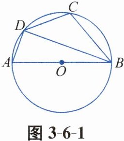 例1 如图 3-6-1,四边形ABCD 内接于$\odot O$,AB 为$\odot O$的直径,$∠ABD= 20^{\circ }$,求$∠C$的度数.