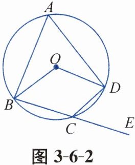 例2 (2024秋·湖州期中)如图 3-6-2,四边形 ABCD内接于$\odot O$,点 E 在 BC 的延长线上. 若$∠BOD= $$120^{\circ }$,则$∠DCE$的度数为