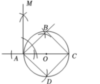 作法:①作直径AC;②过点A作AC的垂线AM;③作∠MAC的平分线交$\odot O$于点B;④以点A为圆心,AB长为半径作弧,交$\odot O$于点D;⑤依次连结BC,CD,DA.四边形ABCD就是所求作的正方形.