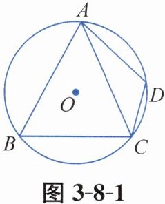 例1 如图 3-8-1,在 $ \odot O $ 的内接四边形 $ ABCD $ 中,$ \angle B= 62^{\circ} $,$ \angle ACD= 39^{\circ} $. 若 $ \odot O $ 的半径为 5,则 $ \widehat{CD} $ 的长为( )
