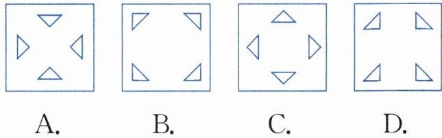 1. 把一张正方形纸片按图①、图②对折两次后,再按图③挖去一个三角形小孔,则展开后的图形是(