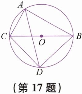 17.(8分)如图,点$ A 在\odot O$上,$BC $是的直径,$\angle CAB 的平分线交\odot O于点 D$.求$\angle CBD $的度数.
