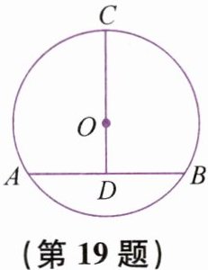 19.(8分)如图,$AB 是\odot O$ 的弦,$D 是 AB $的中点,连结$ OD 并反向延长交\odot O于点 C$.若$ AB= CD= 8$,求$\odot O$ 的半径.