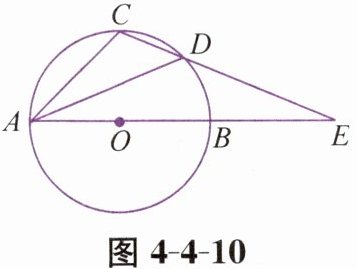 例3 如图 4-4-10,AB 是⊙O 的直径,△ACD 内接于⊙O,$\widehat{CD}=\widehat{DB}$,AB,CD 的延长线相交于点 E,且 DE=AD.