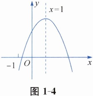 变式3-1 已知二次函数$y=ax^{2}+bx+c(a≠0)$的图象如图1-4所示,有下面5个结论:①$abc<0$;②$b<a+c$;③$4a+2b+c>0$;④$2c<3b$;⑤$a+b<m(am+b)$(m是不为1的实数).其中正确结论的个数是(
