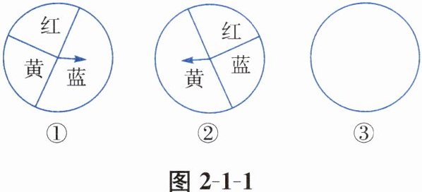 例2 如图2-1-1,每个转盘有红、黄、蓝三种颜色.