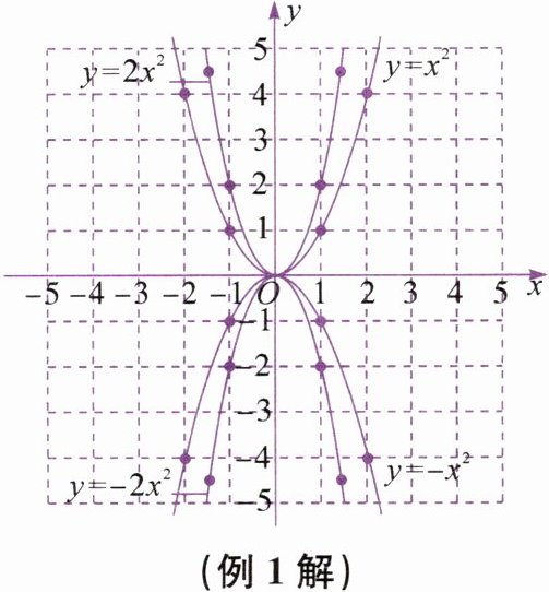 例1 在同一平面直角坐标系中,画出下列二次函数的图象: