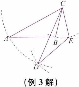 例3 如图 3-2-3,在△ABC 中,AC>BC,将△ABC 绕点 C 旋转得到△DEC,使得点 B 的对应点 E 落在直线 AB 上(点 E 不与点 B 重合).