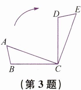 3. 如图,将△ABC 绕点 C 按顺时针方向旋转90°得到△EDC. 若∠ACB= 20°,则∠ACD的度数为 (