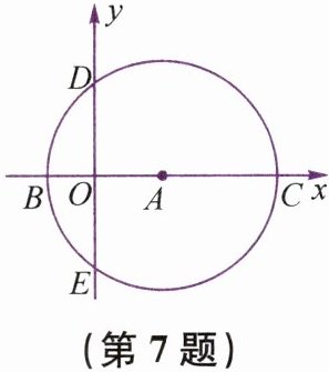7. 如图,在平面直角坐标系中,以点 A(3,0)为圆心,半径为 5 的⊙A 与 x 轴相交于 B,C 两点,与 y 轴相交于 D,E 两点.求:
