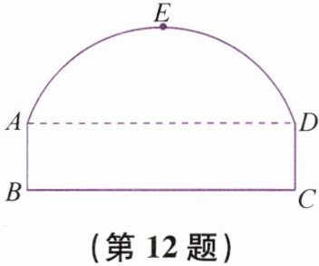 12. 如图,隧道的上方是一段圆弧,下方是矩形 ABCD. 矩形的长 BC 为 12 m,宽 AB 为 3 m,隧道的顶端 E($\widehat {AED}$的中点)高出道路(BC)7 m.