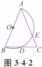 例3 如图3-4-2,在△ABC中,AB= AC,∠C= 67.5°,以AB为直径的半圆与BC,AC分别相交于点D,E,则$\widehat{AE}$的度数为( )