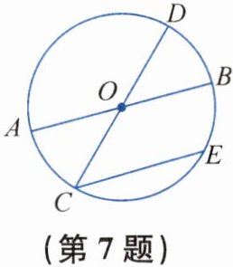 7. 如图,在$\odot O$中,AB,CD是直径,CE//AB且交圆于点E,求证:$\widehat{BD}= \widehat{BE}$.