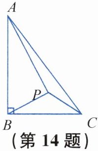 14. 如图,在Rt△ABC中 ,∠ABC= 90°,AB= 6,BC= 4,P是△ABC内部的一个动点,且满足∠PAB= ∠PBC,求线段CP长 的最小值.