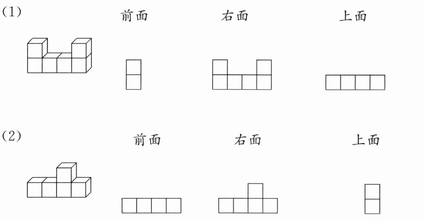 (4)① ② 提示 根据立体图形的位置关系想象从前面、右面和上面看到的图形形状。