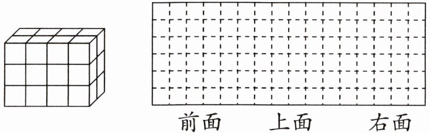 提示:仔细观察图形可知,长方体是由24个小正方体组成的,从前面看到的是由12个小正方形组成的长方形,每行4个,排成3行;从上面看到的是由8个小正方形组成的长方形,每行4个,排成2行;从右面看到的是由6个小正方形组成的长方形,每行2个,排成3行。