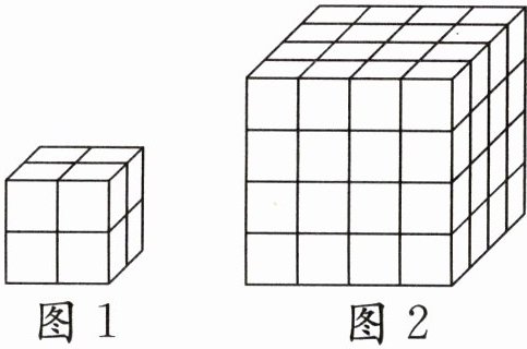 64÷8=8(个) 提示:图1中有8个小正方体,图2中有64个小正方体。
