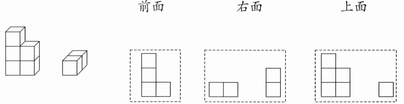从右面看是什么图形?把它画出来。至少再添几个小正方体可以使这个立体图形成为大长方体?