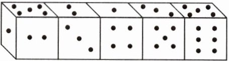 4. 有5个完全一样的正方体,每个正方体的表面都标有1~6个点,如右下图,摆成的几何体的后面的点数之和是多少?