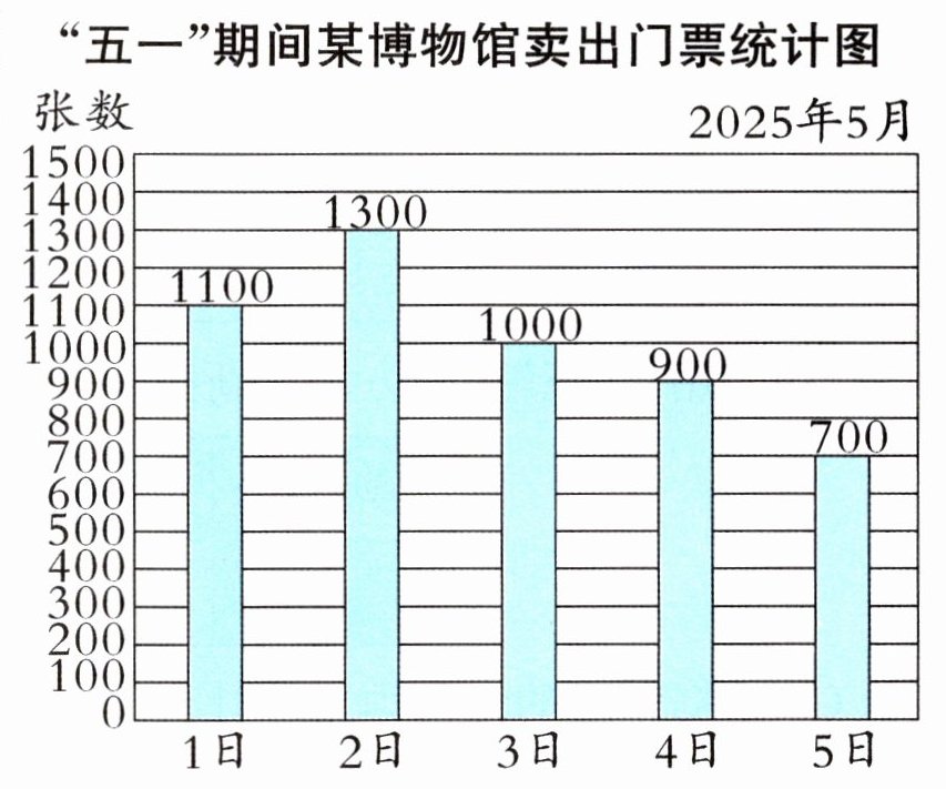 3. “五一”期间某博物馆卖出门票情况的统计如右图。这5天平均每天售出门票多少张?