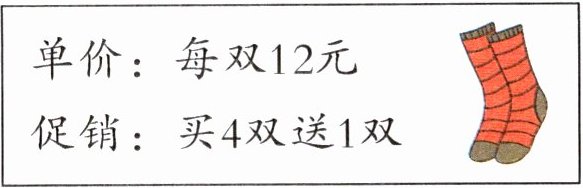 提示 根据总价÷单价=数量,求出按原价100元可以买多少双棉袜,又因为促销,买的棉袜双数中包含几个4,就送几双棉袜,相加即可。