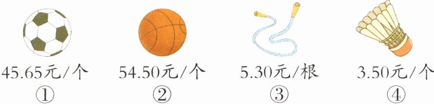 7. 徐老师为了鼓励五(1)班学生参加大课间活动,准备从下面的运动器材中购买两种。徐老师付给营业员100元,找回40.2元。(共16分)